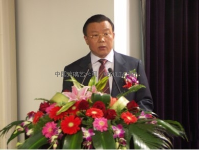中国玻璃艺术家专家委员会会长赵明洲宣读《关于成立中国文化管理学会玻璃艺术家专家委员会的决定》,并作了发言。