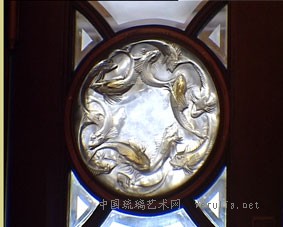 拉力克艺术玻璃是上个世纪风行欧洲的一种特殊的玻璃艺术品,创始人是法国人雷内.拉力克(ReneLalique)。这种玻璃在烧制的过程中融入了锑、砷和钴,有透明和磨砂两种,具有特殊的色彩及立体效果,远看是乳白色,近看是暗蓝色,迎着光则呈鲜红色。这种玻璃目前在上海几近绝迹,可是在和平饭店却仍能看到,九楼九霄厅门上便有四块保存完好的拉力克玻璃。因为是上世纪初用特殊的工艺烧制而成,不可复制,更显弥足珍贵。拉力克公司的后人曾来饭店参观,表示这几块玻璃的价值相当于和平饭店的半成资产,虽然有点夸张,但足见其身价之高。