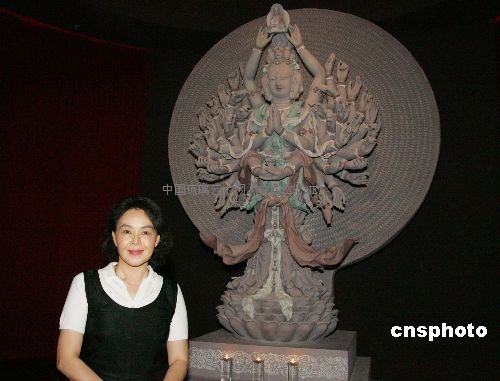 八月在上海琉璃博物馆内,台湾琉璃艺术家杨惠姗畅谈其“今生大愿”:把敦煌三窟一幅逐渐消逝的元代壁画,雕塑成一尊四米高的立体像(如图),并预备在她有生之日,铸造成琉璃。据悉,这尊立体塑像,曾让无数海内外参观者徘徊不去,泪如雨下。目前,该立体塑像陈列在上海琉璃博物馆内。